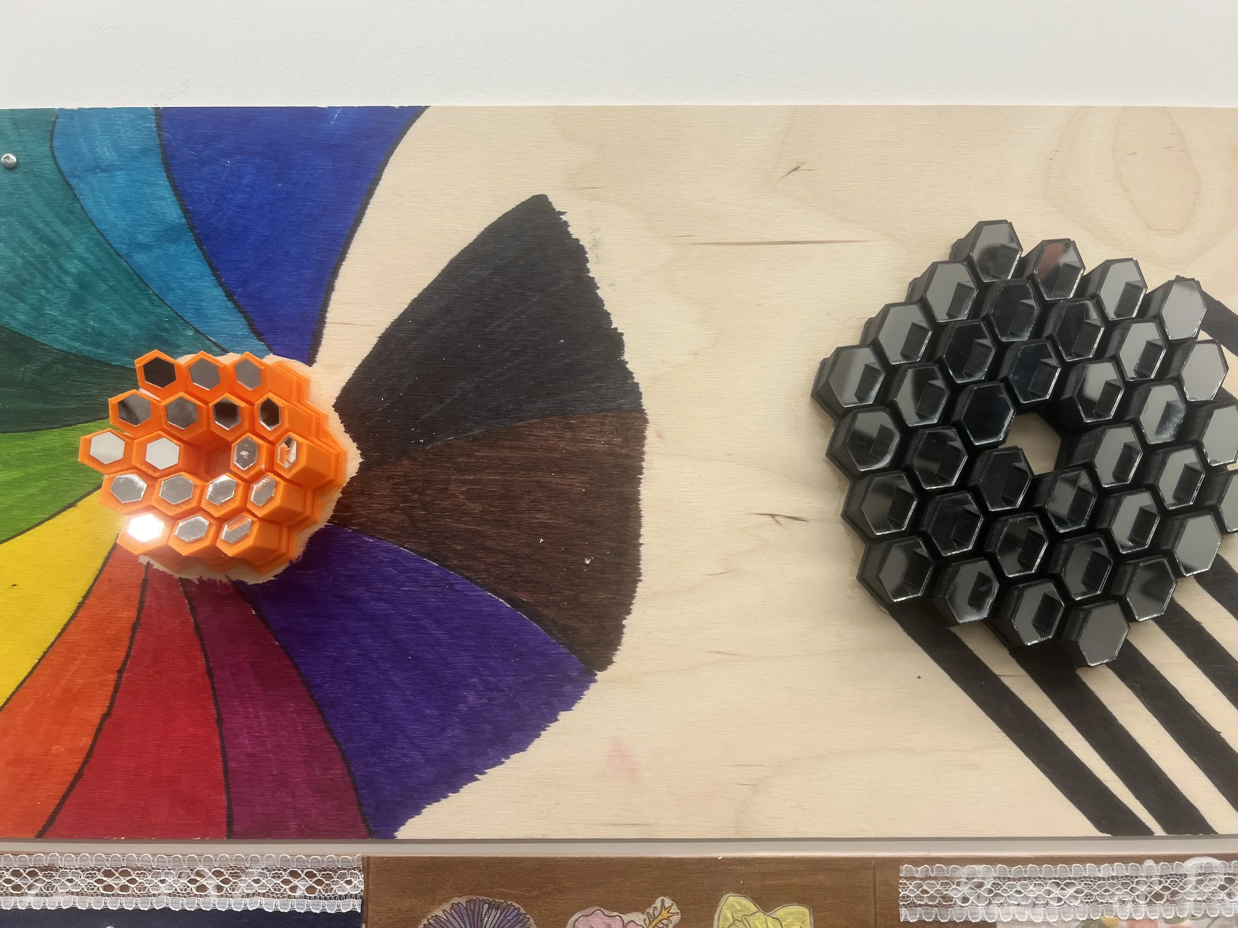 For this Critical Digital Maker Literacy project, I explored the relationship between artificial intelligence and bias through a physical artifact: two hexagonal mirror arrays that manipulate reflections based on viewer position and orientation. Using Python programming and fundamental physics principles of reflection, I created mirrors that produce different images depending on the distance and angle from which they are viewed—much like how AI-generated text varies based on the prompts and data it receives.